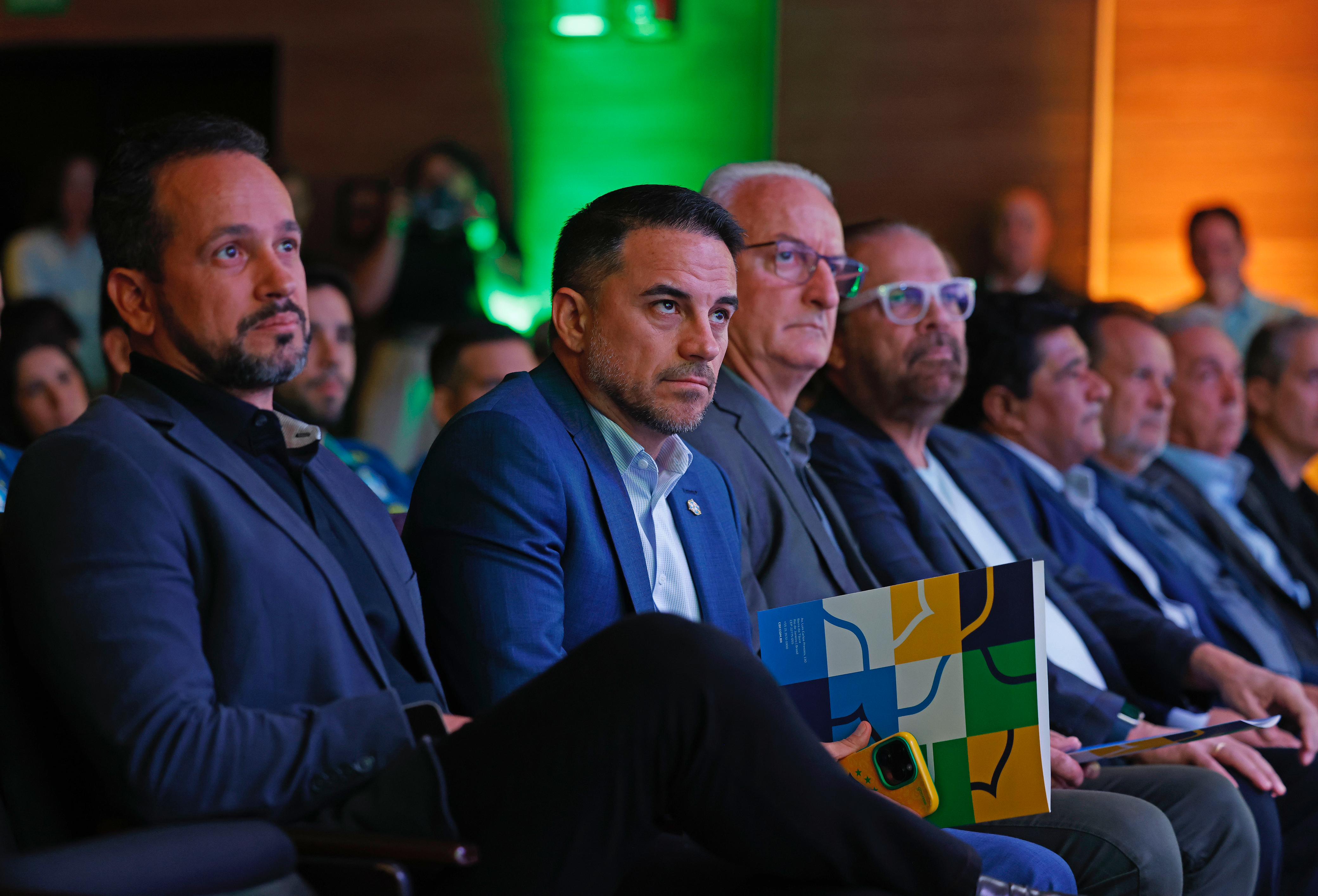Ricardo Lima com Rodrigo Caetano e Dorival Junior na convocação da Seleção Brasileira para os jogos contra Equador e Paraguai pelas EliminatóriasCréditos: Rafael Ribeiro/