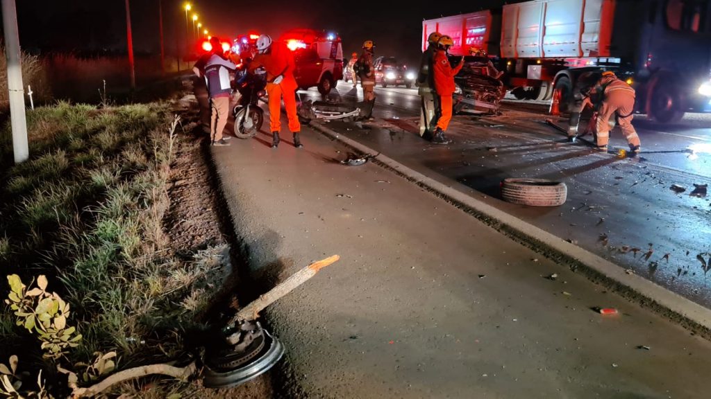 Três pessoas sobreviveram após uma forte colisão entre um caminhão, um veículo de passeio e uma motocicleta na DF 001, após o 26 de Setembro, sentido Taguatinga – Brazlândia, na noite desta sexta-feira (2). O Corpo de Bombeiros Militar do Distrito Federal (CBMDF) atendeu essa ocorrência com oito viaturas e 32 militares